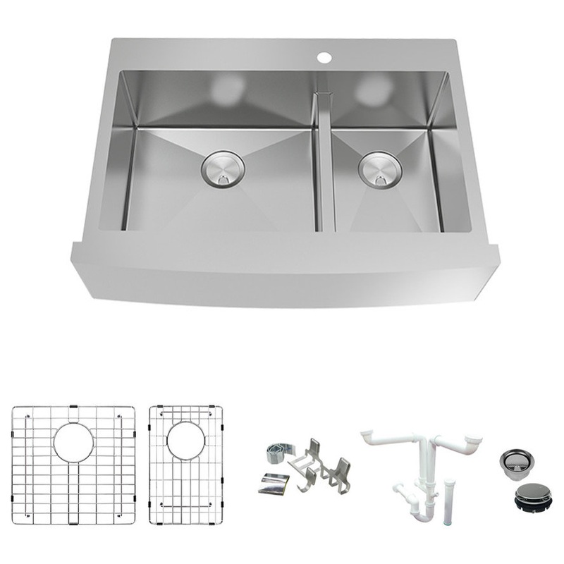 -QUIET AND PROTECTED: Thick 5 mm dampening pads and waterproof undercoating for sound and condensation insulationFREE ACCESSORIES: Includes universal sink drain kit with standard 1-1/2 inch pipe fittings, 5-piece magnetic accessory kit, set of stainless steel sink grids, and stainless covered flip-top sink and disposer strainers.