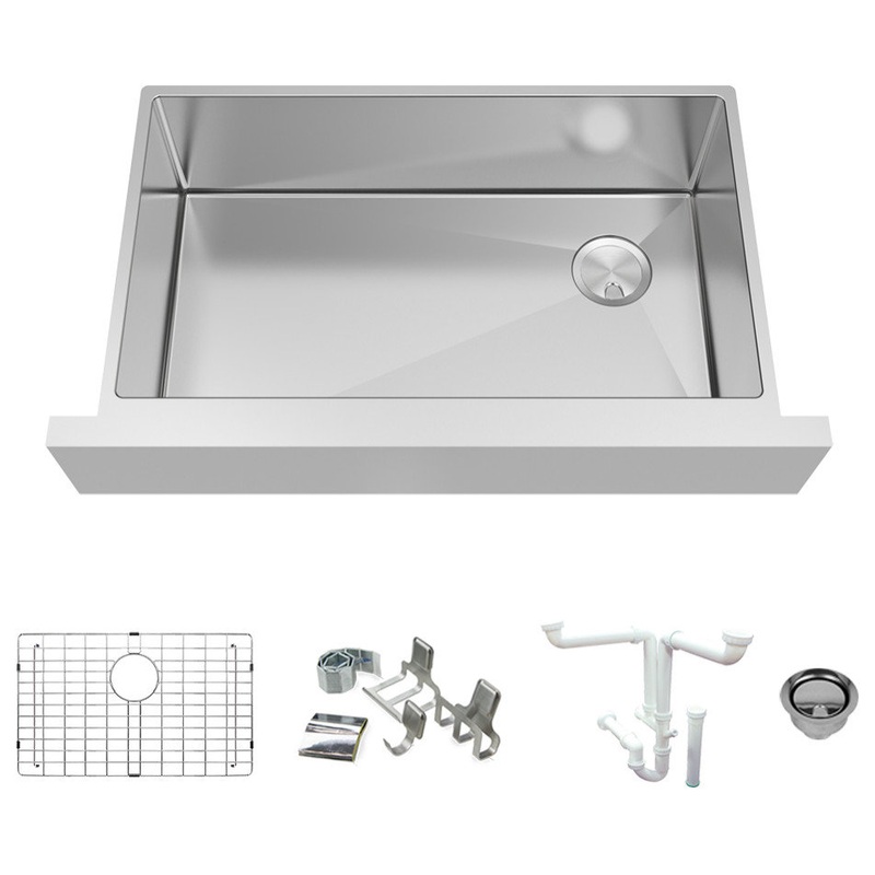 -QUIET AND PROTECTED: Thick 5 mm dampening pads and waterproof undercoating for sound and condensation insulationFREE ACCESSORIES: Includes universal sink drain kit with standard 1-1/2 inch pipe fittings, 5-piece magnetic accessory kit, set of stainless steel sink grids, and stainless covered flip-top sink and disposer strainers.