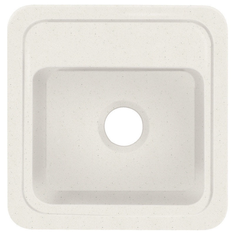 -18-in x 18-in x 9-in Entertainment/Prep single bowl -Top mount self-rimming sink -Solid surface material is non-porous; scratches and stains like coffee, juice, berries and burns are easily removed with abrasive cleaners, restoring and renewing original f