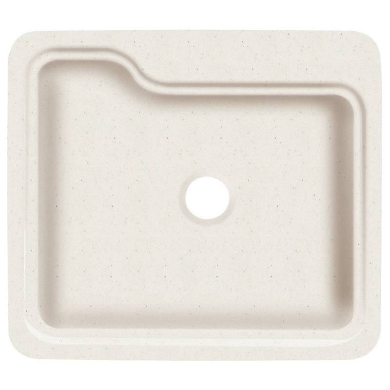 -25-in x 22-in x 10-in Gourmet single bowl -Top mount self-rimming kitchen sink -Solid surface material is non-porous; scratches and stains like coffee, juice, berries and burns are easily removed with abrasive cleaners, restoring and renewing original fin