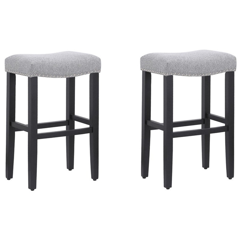 Give your kitchen a stylish update with these attractive barstools. With solid rubberwood legs and seat frame, the stool is sturdy for safe and reliable sitting. The upholstered seat with silver nail head trim makes it an eye-pleasing piece to liven up you