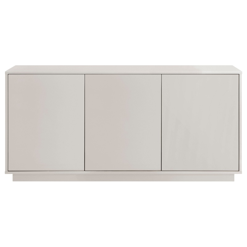 -Tresero 65″ Sideboard in High Gloss Warm GraySimple, sleek, and functional- These are all hallmarks of the Tresero collection. With its white lacquered finish and clean lines, the Tresero sideboard is classically modern. Featuring push open doors and interior adjustable shelves, this sideboard maximizes storage while maintaining a minimalist aesthetic.