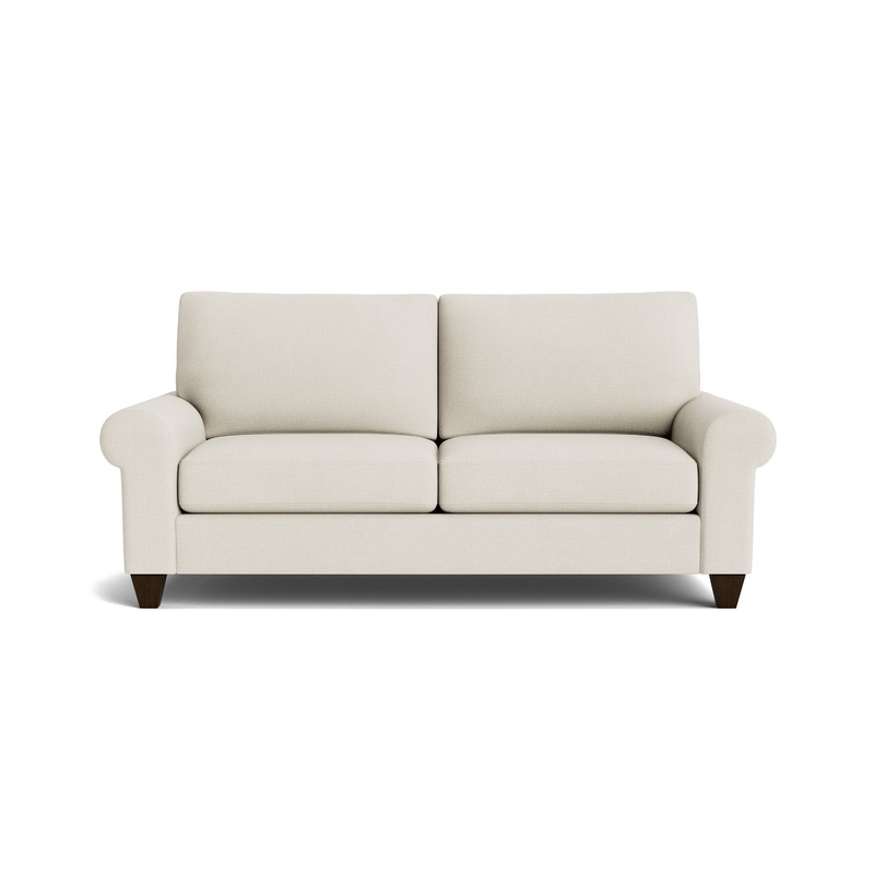 Embrace the au courant while also forever-timeless curves of the True Custom Large Roll Arm Studio Sofa. The soft roll and extra arm padding of this sock arm sofa is where youll find comfort that spans the design spectrum, from classic to transitional to contemporary. Its also where youll find your coziest moments. Choose your preferred cushion to sink into. Then find the custom fabric that you want to see and be seen in, every day and night. Then get comfortable in grand style. Also available in a sleeper version with a queen standard innerspring mattress.
