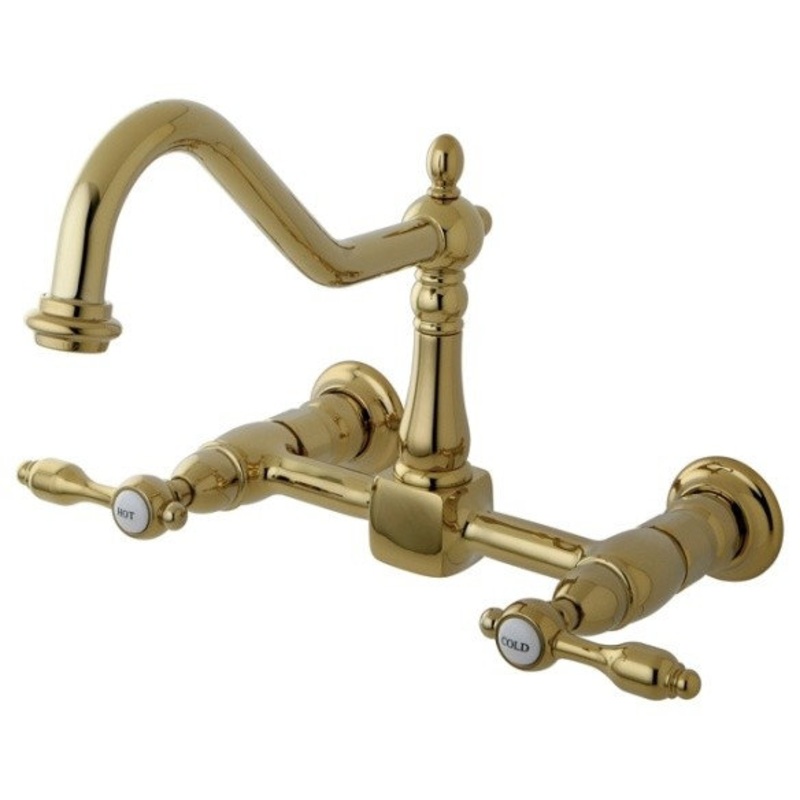 The true vintage look of a wall mount faucet, although originally designed to be a kitchen faucet, it can also be used as a vessel lavatory faucet, equipped with a ceramic cartridge and fabricated out of solid brass for long lasting performance, Polished Brass. Manufacturer: Kingston Brass. Model: KS1242TAL. UPC: 663370278662. Product Name: Kingston Brass Tudor 8″ Center Kitchen Faucet Without Sprayer. Collection / Series: Tudor. Finish: Polished Brass. Theme: Classic. Material: Brass. Type: Faucet. Features: High Quality Brass Construction