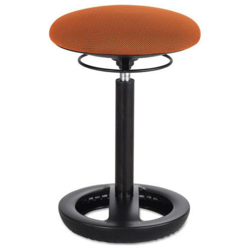 Height-adjustable, active seating solution that provides ergonomic posture to users. Design is a symmetrical balance between the base and top, giving it a sleek look, which sets it apart from traditional seating and other similar seating options. Features