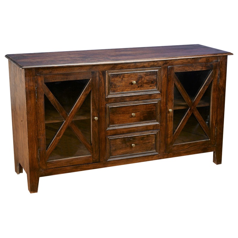 This unique “X” door design buffet is made from solid mango. The hand applied pecan stained finish on the rough sawn mango wood gives this buffet a rustic feel. Great in a dining room, living room or under a TV.