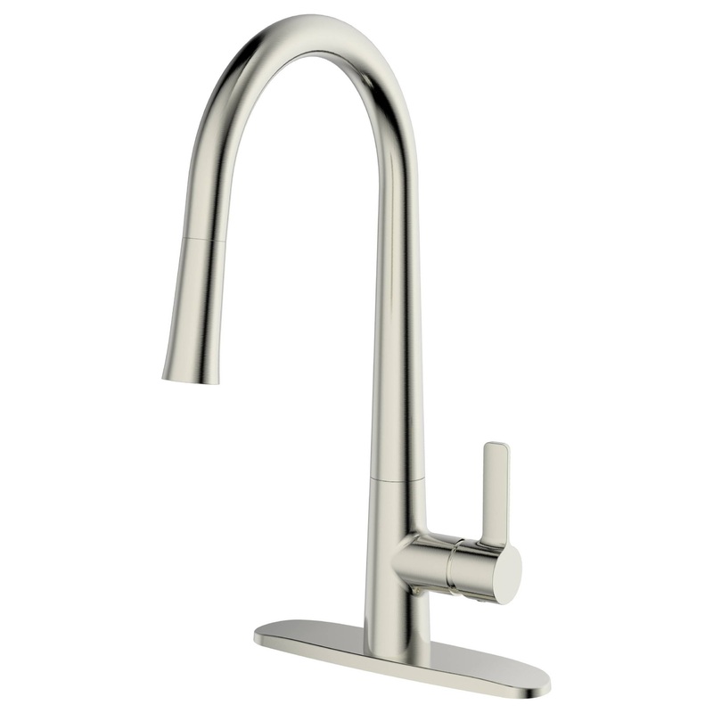 Features -Style: Modern/Contemporary Kitchen Faucets -Single Handle -Finish: Brushed Nickel -Solid Brass Construction: Durable and Reliable -Spout Height: 9.25" -Spout Reach: 10.5" -Spout Swivels 360 Degrees -Pull-Out Spray -Flow rate: 1.8GPM -Faucet Cartr