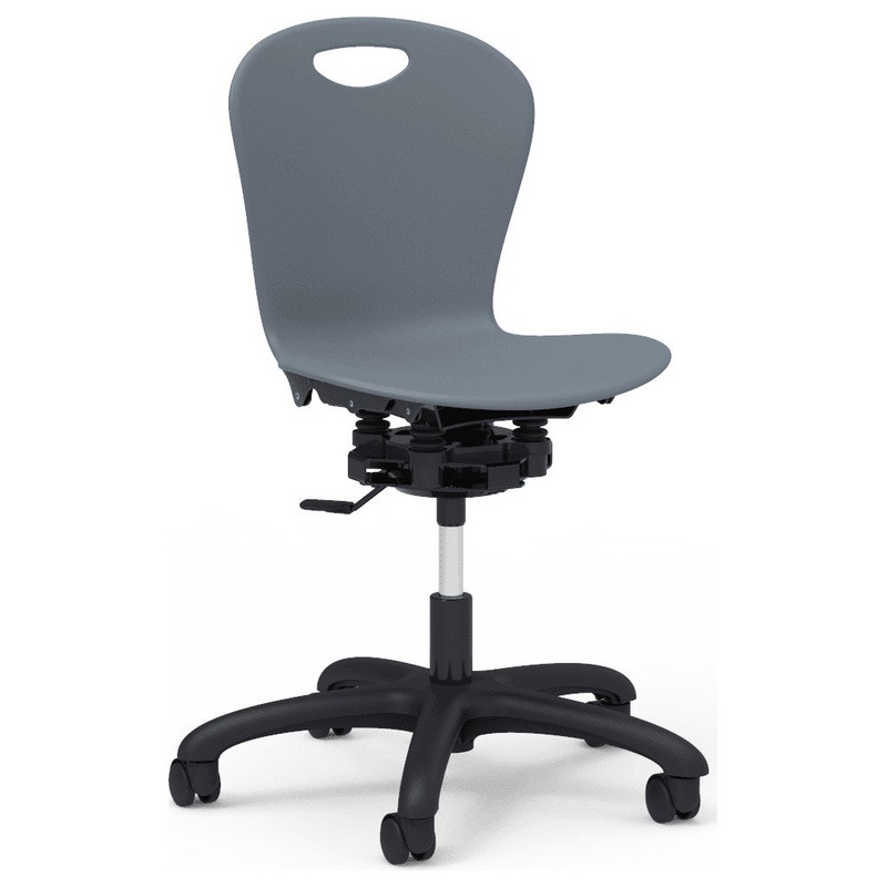 -Ergonomic seat is secured by four air coils that flex and compress, adjusting as you move; Five-point base with five 2" dual-wheel nylon swivel casters for mobility -Pneumatic cylinder mechanism for easy, instant seat-height adjustment; Seat height adjust