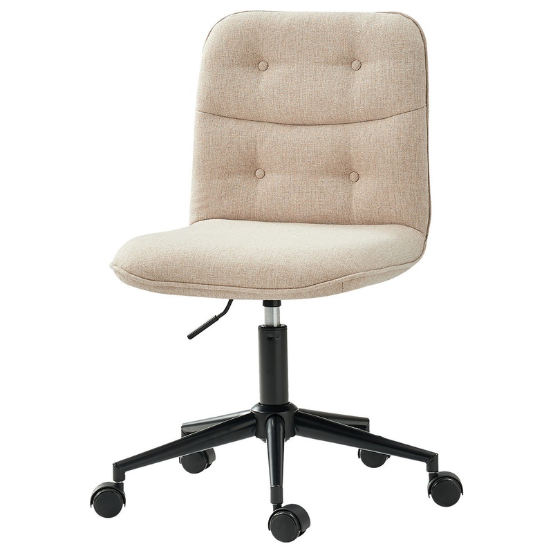 The mid-century modern armless office chair blends form and function. With a convenient up-and-down adjustment feature, this chair ensures customizable workspace comfort. Upholstered in a luxurious combination of plush fabric and faux linen, it exudes soph