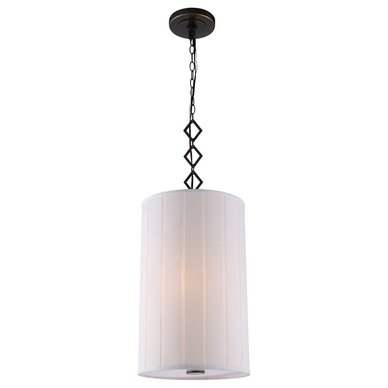 URBAN CLASSIC 1458D13BZ Luna 2-Light Pendant. Relax in the soft, diffused glow of the Luna collection of hanging lighting fixtures. The simply stated and romantic shade, with its vertical pattern on faux silk, is the embodiment of the moon goddess herself. This aura of moonlight is suspended by burnished-brass, bronze, polished-nickel or vintage-nickel finish hardware. Illuminate your divine love of the night with this kiss of romance in your bedroom, dining room or entryway. . Room use: Dining room; Living room; Bedroom; Bathroom; Entry Way; Closet. Diameter of 13 inches; minimum hanging height of 29 inches, maximum hanging height of 83 inches. Warm, brilliant light is created by 2 light bulbs. (not included). Style: Transitional. Collection: Luna. Dimension(in): 13(Width/Diameter) x 23(Height). Min/Max Height(in): 29/83. Shade Dimension(in): Top:13″ Bottom:13″(W) x 21(H). Shade Material: Silk. Shade Color: Off-White. Shade Shape: cylindrical. Canopy Dimension(in): 6.3(Width) x 1(Height). Chain/Rod/Cord(in): 60″. Chain/Rod/Cord Finish(in): Bronze. Wire Included(in): 72. Wire Color: Black. Product Warranty: 2 years. Bulb: (2) 40W E26 base (Not Included). Voltage: 110V-125V. Light Direction: UP. Finish: Bronze. Fixture Material: Metal. UL & ULC Standard: Yes.