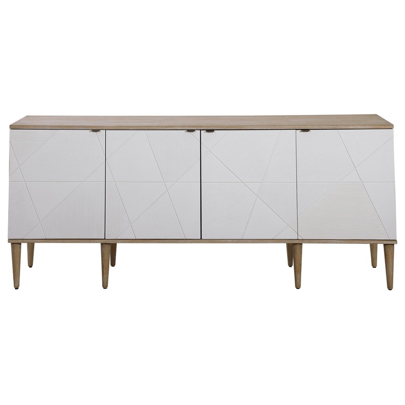 All furniture purchases are final. If furniture arrives damaged or is defective please call for assistance (800) 375-3403. Furniture Return Policy Features: Uttermost’s furniture combines premium quality materials with unique high-style design With the advanced product engineering and packaging reinforcement, uttermost maintains some of the lowest damage rates in the industry – each product is designed, manufactured and packaged with shipping in mind This versatile and stylish cabinet provides the perfect sideboard, media unit, or console cabinet Accented by geometrically textures doors atop sleek tapered legs adds a subtle mid-century feel Crisp and modern design lends itself to a variety of dcor styles Soft close doors feature and aged steel tab and opens to a compartment with one adjustable shelf complete with wire management