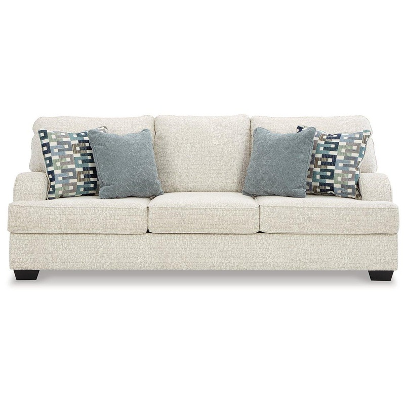 This sofa has the corner on casual contemporary style and everyday comfort. Chic and subtly innovative, its crosshatched chenille upholstery is a forward-thinking take on fashionable neutrals. The sleek frame gets a soft, streamlined touch with sloping track arms. Eclectic accent pillows further appeal to your relaxed approach to modern flair.