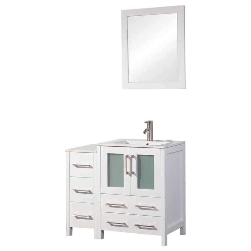 Let the clean-lined look of this vanity by Vanity Art guide your bathroom toward a cool, contemporary design. -Single-sink vanity set with 24" vanity and 12" cabinet -Includes standard mirror, countertop, sink basin and cabinet hardware -Does not include f