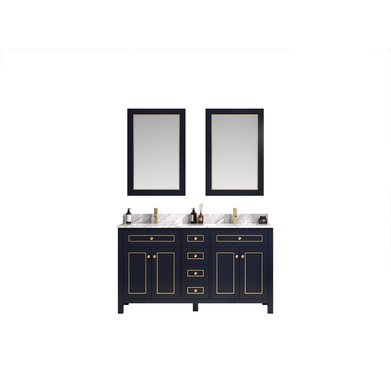 -Dimensions: L:23 x W:60 x H:33 -Finish: Blue -Counter Top: 18mm White Carrara Marble Top -Sink: White Ceramic Sink -Faucet: Not Included -Faucet hole : 4" Pre-drilled 3 holes -Matching Mirror: Sell Seperately ( WLF2436-B-M ) -Mirror Dimensions: L:1 x W:24