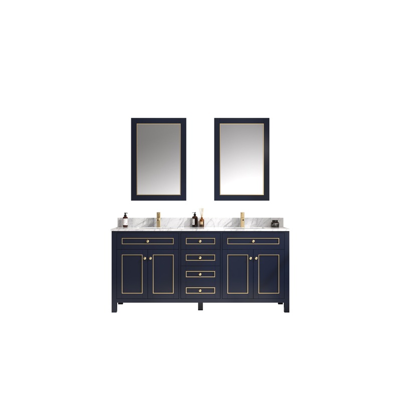 -Dimensions: L:23 x W:72 x H:33 -Finish: Blue -Counter Top: 18mm White Carrara Marble Top -Sink: White Ceramic Sink -Faucet: Not Included -Faucet hole : 4" Pre-drilled 3 holes -Matching Mirror: Sell Seperately ( WLF2436-B-M ) -Mirror Dimensions: L:1 x W:24