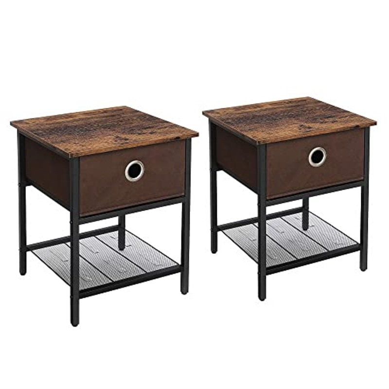 Dettagli: Vasagle set di 2 tavolino da salotto, comodino con cassetto in tessuto, struttura resistente in acciaio, soggiorno camera da letto, assemblaggio semplice, marrone vintage e nero.