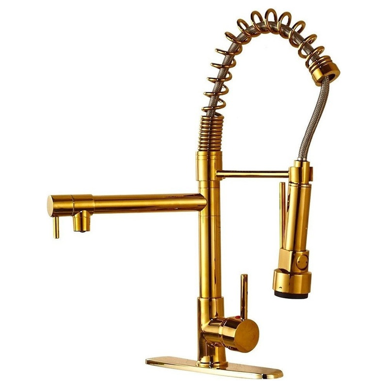 The Venezuela Kitchen Sink Faucet comes in Gold Finish & has a Single Handle. An excellent choice to make your Kitchen complete. Venezuela Faucet Specifications: -Type: Kitchen Sink Faucet -Product Dimensions: 21 x 11 x 3 inches -Color: Gold Polished -Styl