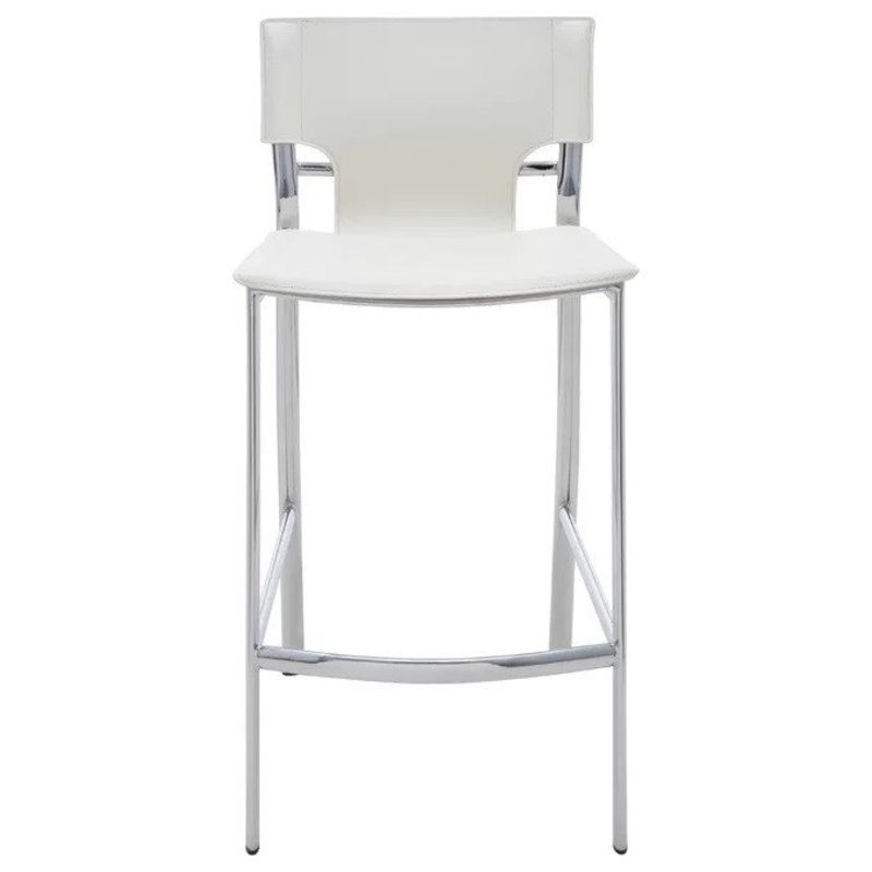 This counter stool showcases an unique expression of modern design, is ideal for a elegant touch to your kitchen, bar or dining room. This stool is suitable for both residential and comercial use. Features: -PU upholstery -Detachable Cushions -Metal Chrome