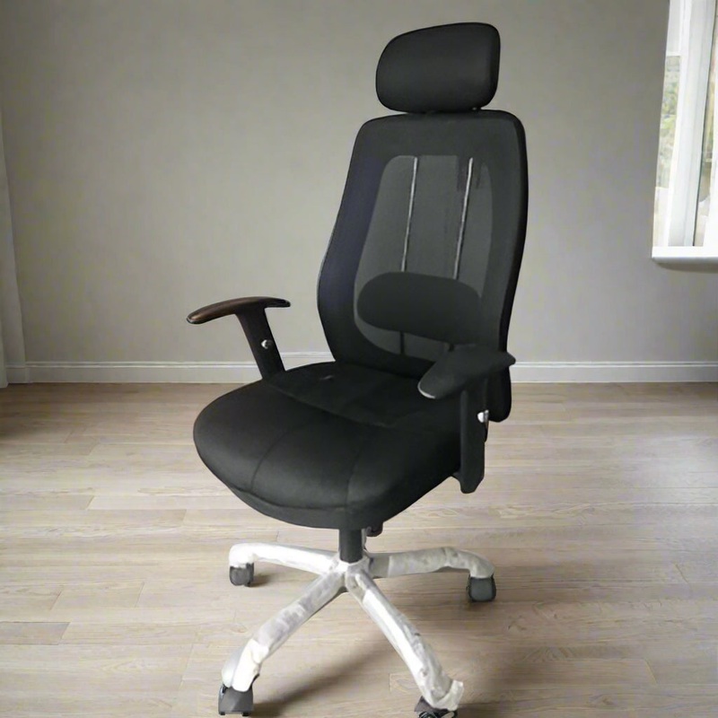 Distinctive Combination Of Mesh And FabricSuitable for extra working hoursAdjustable headrest for extra support to head and neckCurvy lumbar support forarmrest