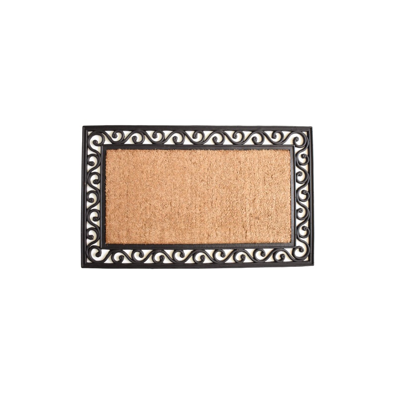 Over-sized to provide more coverage, this beautiful combination of coir and rubber make a stylish, yet durable reception for your guests. While the heavy-duty rubber adds weight and elegance, the coir acts as a natural scraper on shoes to keep debris from entering your home. Sweep or hose clean.