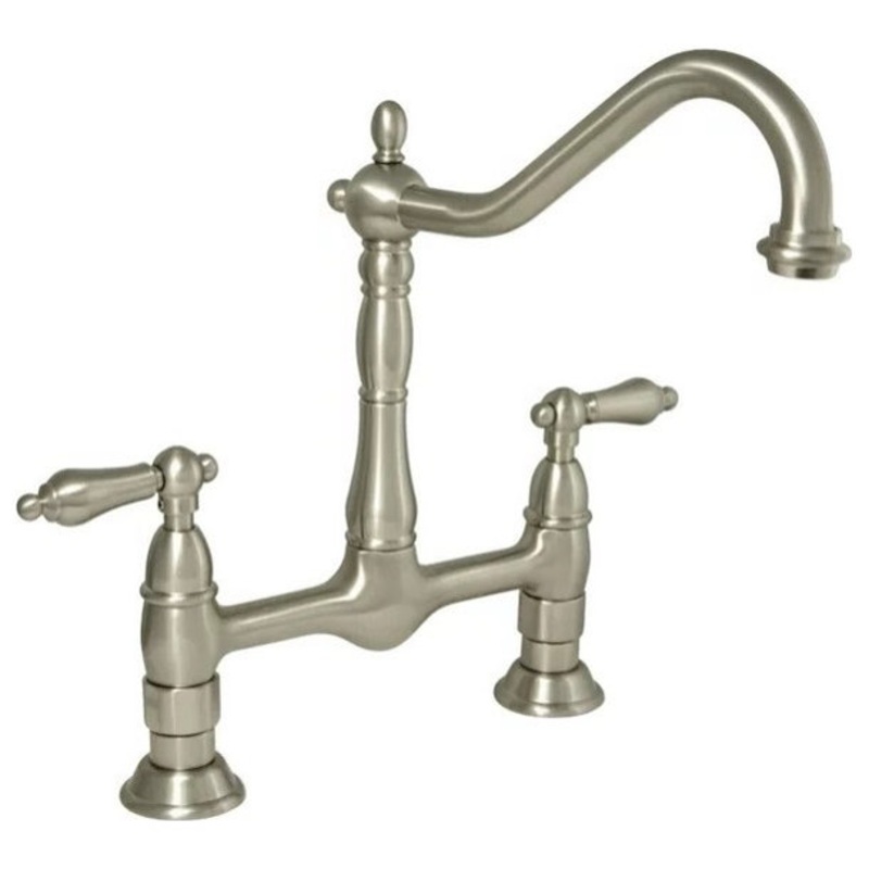 Victorian Bridge Kitchen Faucet with Arched Spout and Dual Lever Handles – Traditional – Kitchen Faucets – by Declusia-WMEF1023-32004018