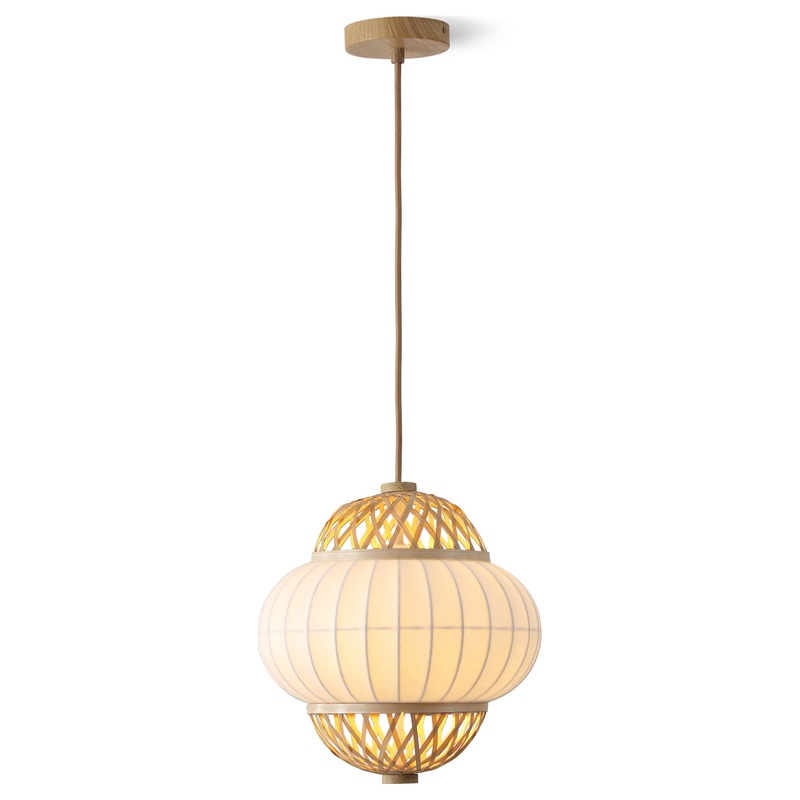 Discover the refined elegance of the VidaLite Hikari Mini Pendant Light, a fusion of Japanese-inspired design and contemporary craftsmanship. This compact lighting solution features an aluminum body with a wood grain finish and is adorned with a silk bambo