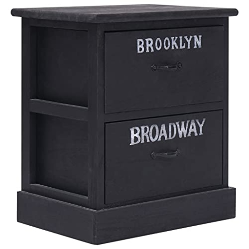 vidaXL Comodino Vintage Tradizionale Robusta Cassettiera con 2 Cassetti Armadietto Notte Tavolino Laterale Nero 38x28x45 cm Legno di Paulownia