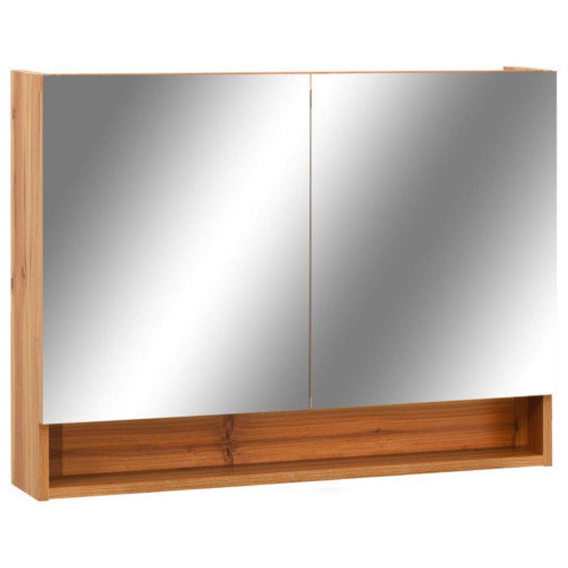 Add an aesthetic and pleasant appearance to your bathroom with this LED vanity mirror cabinet! The wall mirrored cabinet with LED adds a touch of contemporary style and soft illuminating light to any room! The cabinet is made of quality MDF board with the
