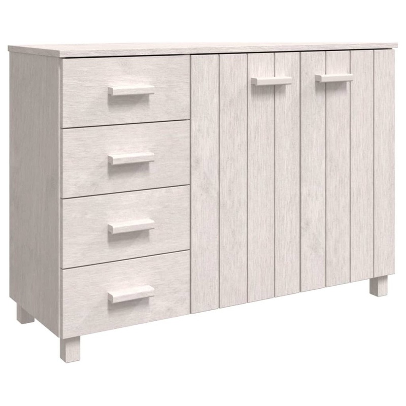 This wooden sideboard makes a decorative and practical addition to your decor. This drawer cabinet is made of solid pinewood, making it stable and sturdy. The highboard has 2 doors and 4 smooth sliding drawers, providing ample storage space for keeping you