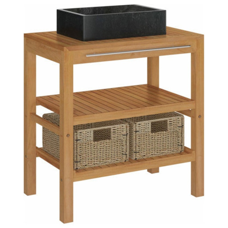 This stylish wooden bathroom cabinet with a sink and 2 baskets with beautiful yet simplistic style is a perfect match for your bathroom or washroom decor. The sink cabinet is constructed from solid teak wood which is durable and sturdy enough to place a ba
