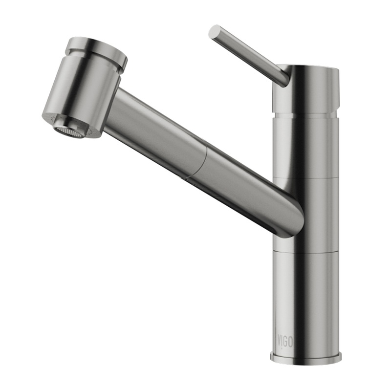 With a low profile and a dimensional silhouette, The Branson by VIGO marries form and function to provide a sensibly modern kitchen faucet. VIGO’s premium 7-layer finish adds smooth texture and a touch of elegance to its solid brass construction. With its swivel spout and extendable dual-action spray head, it makes kitchen tasks feel effortless. Its sleek, low-profile brings freshness to any sized kitchen. This multifunctional faucet single handle faucet is engineered with a dual action, pull-out spray head that delivers an aerated flow of water or a spray. The unobstructed design of The Branson provides a powerful performance and an exceptional kitchen experience.