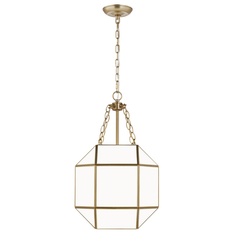 The Morrison three light indoor pendant in satin brass is the perfect way to achieve your desired fashion or functional needs in your home. A lantern-like design with curved arms connecting to a cube-shaped frame -Width: 13.50" -Height: 23.25" -Length: 13.