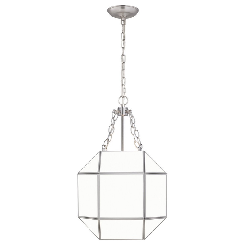 The Morrison three light indoor pendant in brushed nickel provides abundant light to your home, while adding style and interest. A lantern-like design with curved arms connecting to a cube-shaped frame -Width: 13.50" -Height: 23.25" -Length: 13.50" -Weight