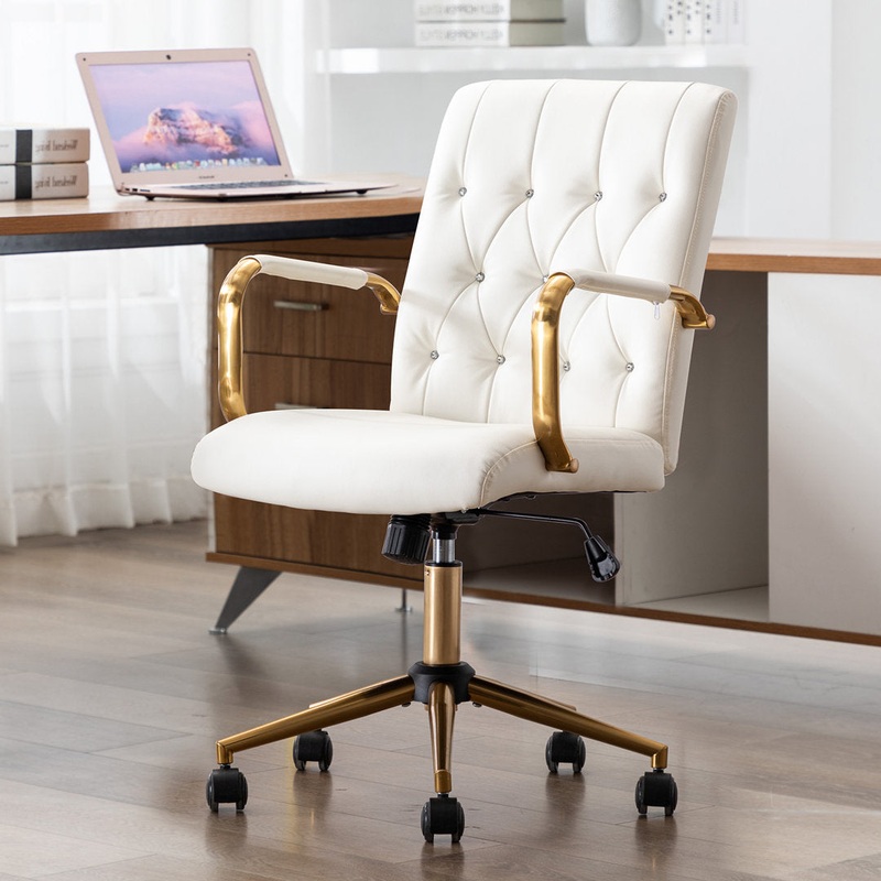 Elevate your office decor with the "Von Executive Chair," blending luxurious comfort with a striking contemporary glam design. This 23" wide office chair is upholstered in premium leather and adorned with eye-catching diamond tufting, making it a standout