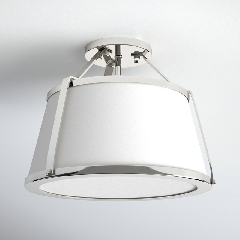 This 3-light semi-flush mount is a great way to add light to your space without taking up too much square footage. It has a simple metal frame in your choice of finish that encases a fabric shade. A frosted glass diffuser provides soft lighting that perfec