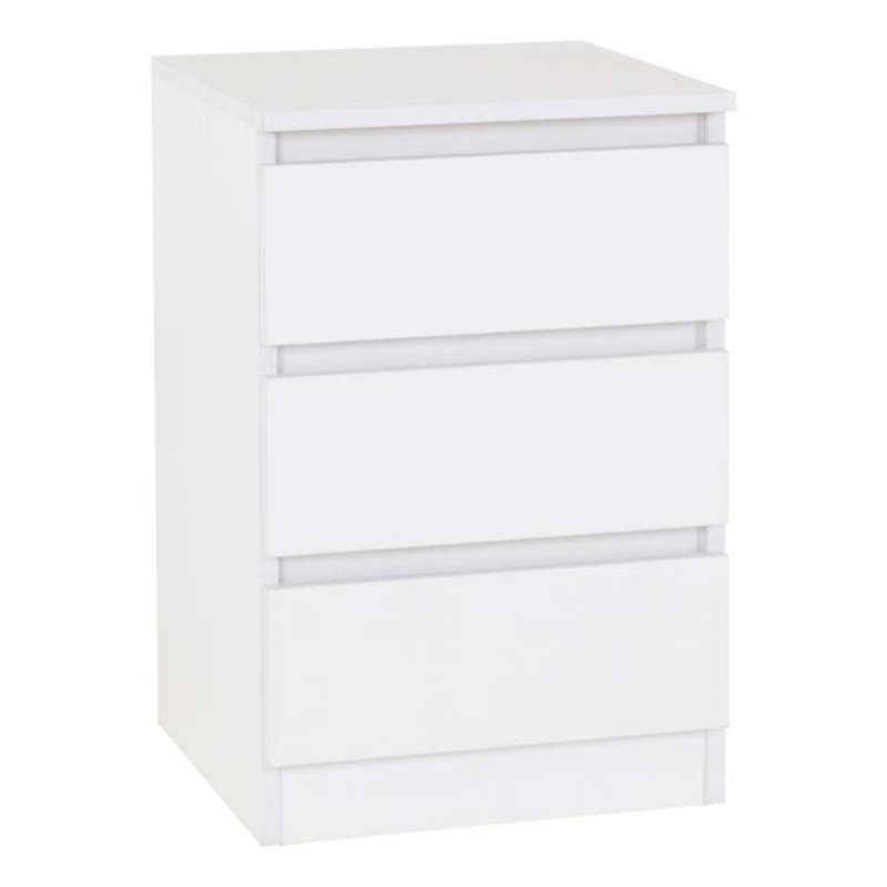 Available in a variety of finishes to complement your interior, this bedside table combines contemporary design with practical storage solutions. Featuring three spacious drawers, it provides ample space for keeping essentials close at hand while maintaining a clutter-free environment. The sturdy construction ensures durability, while the sleek and minimalist design adds a touch of modern elegance to your bedside.