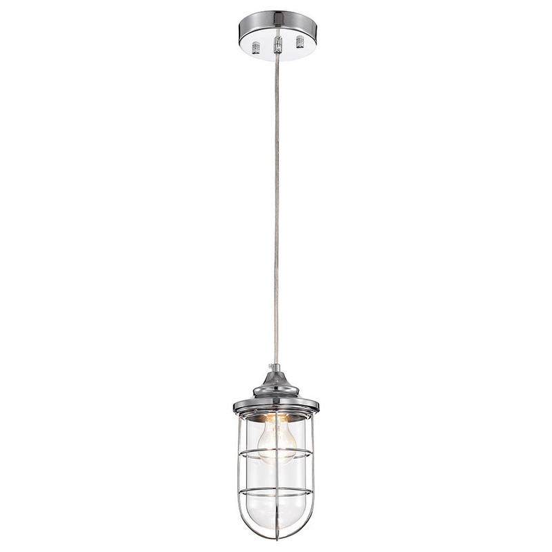 WAREHOUSE OF TIFFANY'S HM164/1 Tiago 5 in. 1-Light Indoor Chrome Finish Pendant Light with Light Kit . Style: Modern & Contemporary. Color: Silver. Metal Finish: Chrome. Material: Metal. Shade Material: Glass. Dimension(in): 5(W) x 5(L) x 43(H). Bulb: (1)(