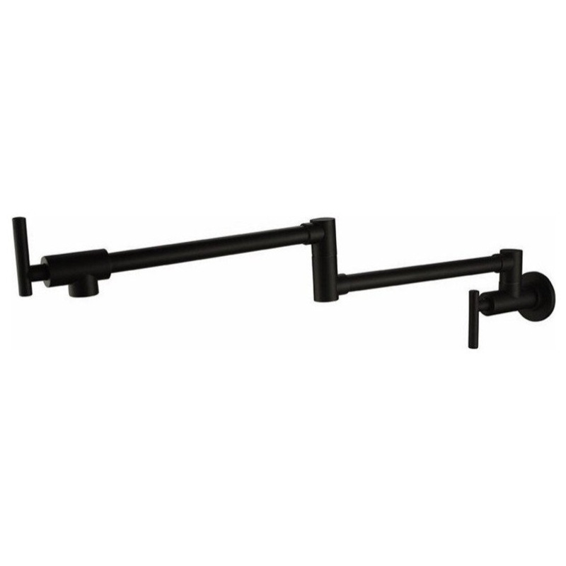 This wall-mounted pot filler tap is a must-have for any at-home chef. The high-quality brass construction ensures durability, while the black finish adds a touch of elegance to your kitchen. The pot filler features a 360-degree swivel spout and is perfect