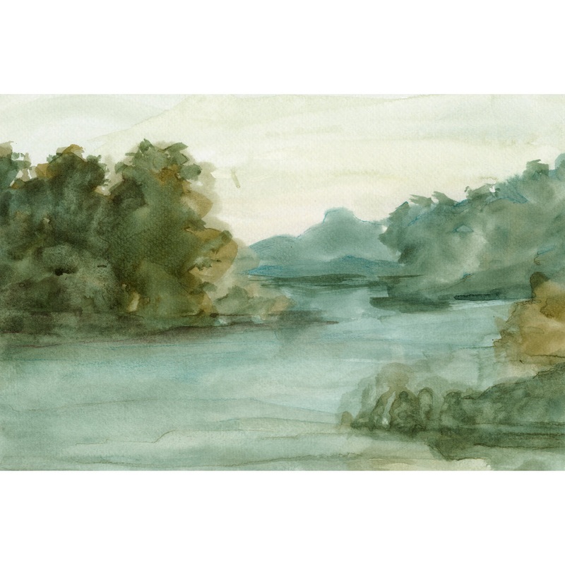 This printed painting brings classic style and a serene feel to your living space. Titled "Watercolor Sketchbook I," this piece by Ethan Harper features a foggy river scene with the winding shape of the water and the surrounding trees sketched softly in ea