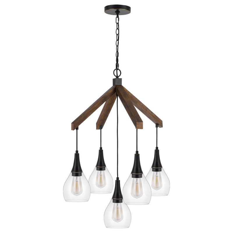 -Durable Metal and Wood Construction -Clear Glass Shades Included -Canopy Included -Six Foot Chain -Ships in One Carton -Chain can be adjusted to desired lengthModel # (MPN)FX-3787-5Product ID195757886Manufactured ByCal LightingSold ByHouzzSize/WeightW 25"