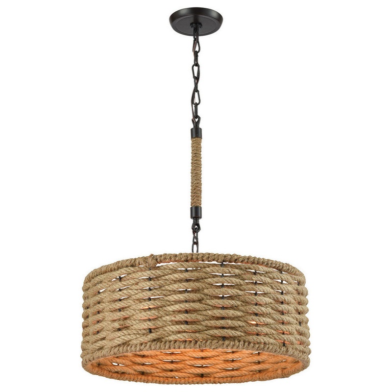 The Weaverton series has a rope weaved frame from which light pierces through. A rope wrapped support rods and oil rubbed bronze finish complete this rustic look.