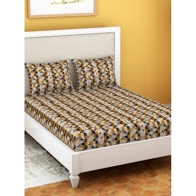 Welspun Dazzle Geometric Beige 140 TC Microfiber Double Bedsheet with 2 Pillow Covers