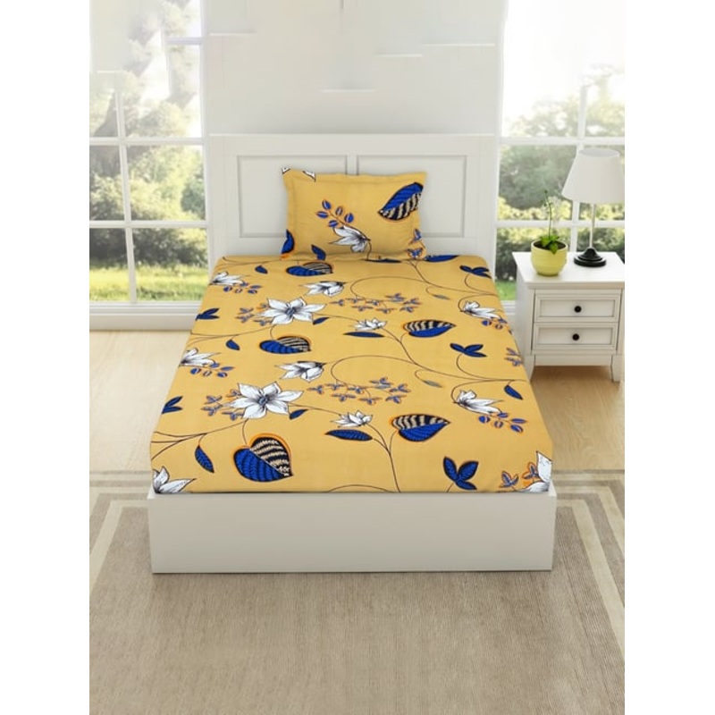 Welspun Floral Mustard Yellow Microfiber Single Bedsheet with Pillow Cover