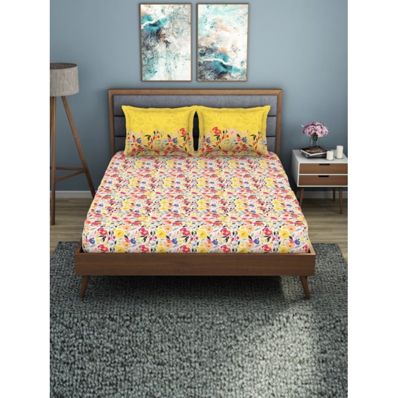 Welspun yellow polycotton jubilance double bedsheets