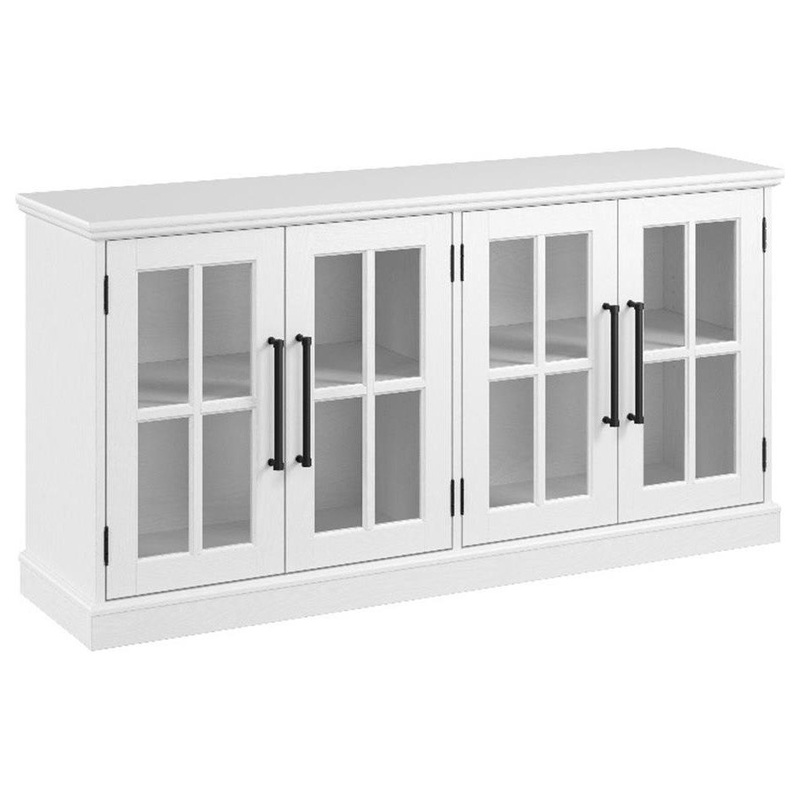 -Sideboard with windowpane glass doors contains one adjustable shelf on each side to keep valuable items safely tucked away