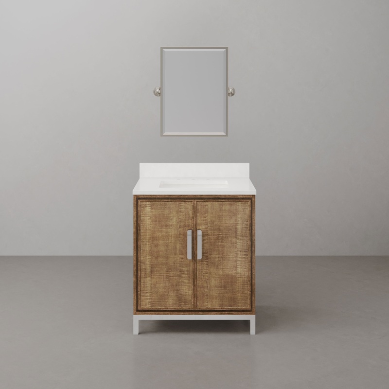 Refine your contemporary bathroom with the sophisticated Westin collection, featuring the 30-inch bathroom vanity in Lustrous Walnut. This stylish free-standing vanity is adorned with a 1-inch-thick Whitebrook quartz countertop and matching 4-inch-high backsplash, complete with pre-drilled 8-inch-wide faucet holes for easy installation of your choice of bathroom faucet. The single undermounted ceramic sink, along with soft-closing doors and drawers with two levels of cabinet shelf storage space, ensure a luxurious experience while maintaining top-of-the-line functionality and usability. Whether you’re planning a new build, renovation, or remodel, the Westin collection’s contemporary design styling is guaranteed to elevate your next bathroom project. Vanity comes fully assembled for easy installation. Matching vanity mirror and bathroom faucets are available as options.
