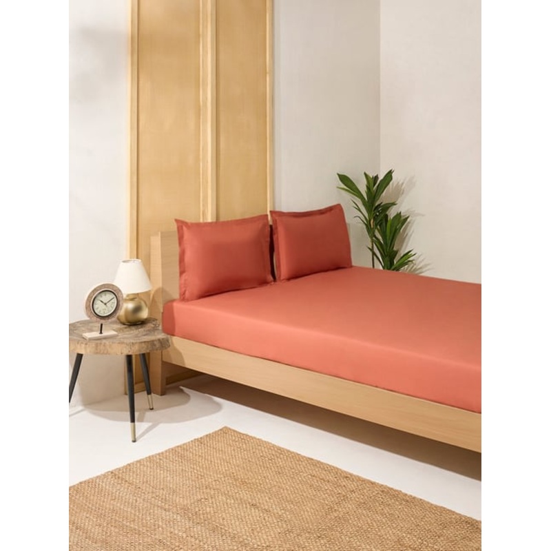 Brighten up your sleep space with the earthy charm of this ochre king bed fitted sheet and pillowcase set from Westside Home. The solid hue adds a bold yet soothing statement to your bedding, while the fitted sheet features deep pockets and elasticated corners for a snug fit that stays in place. Made from soft, breathable fabric, this set ensures everyday comfort and easy maintenance. Paired with matching pillowcases for a polished look, its a great base to layer with patterned duvets or quilts.