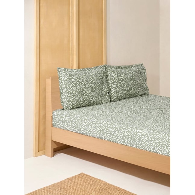 Nestle into the calming embrace of this sage king bed fitted sheet and pillowcase set from Westside Home. The soft green base paired with delicate leaf motifs creates a soothing, nature-inspired backdrop that invites rest. Crafted from smooth, breathable fabric, it ensures comfort through every season while offering a fresh, airy look to your bedroom. Complete with matching pillowcases, its a simple way to bring harmony and style to your nightly retreat.