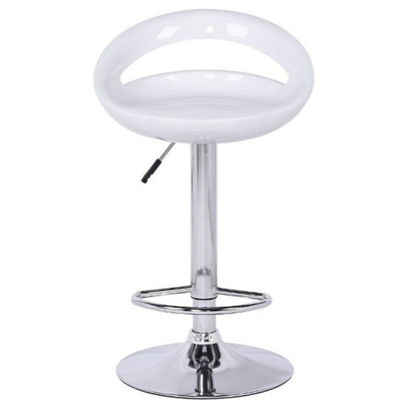 This dual-purpose stool easily adjusts from counter to bar height. The bucket seat design will make this a great accent chair around the bar area or kitchen. The height-adjustable swivel seat adjusts from counter to bar height with the handle located below the seat. The chrome footrest supports your feet while also providing a contemporary chic design. To help protect your floors, the base features an embedded plastic ring.