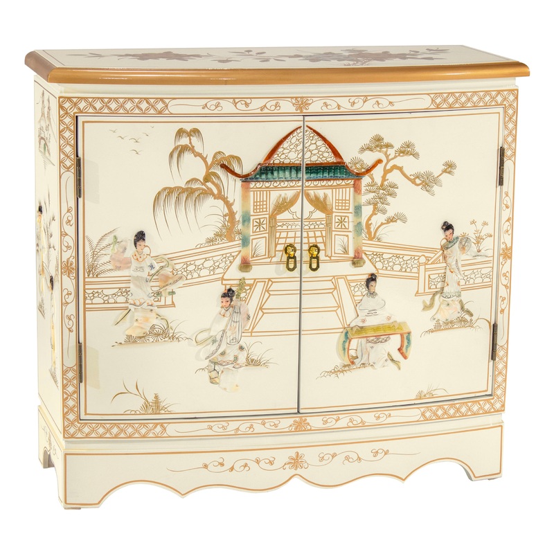 Hand Painted – A master artist with an eye for detail has painted the ladies of the imperial Chinese court on top of a luxurious white lacquer, adorned with carved mother of pearl for an exquisite finish. Unique to the very brushstroke, no two pieces are exactly alike.